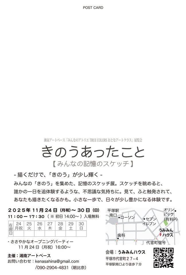今月30日(日)17時半まで、JR平塚駅南口側のうみみんハウス(平塚市代官町27-4)でグループ展が行われています。